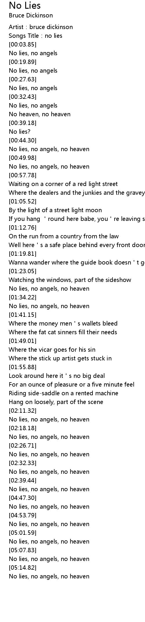 | [05:17.19] | No lies, no angels, no heaven |