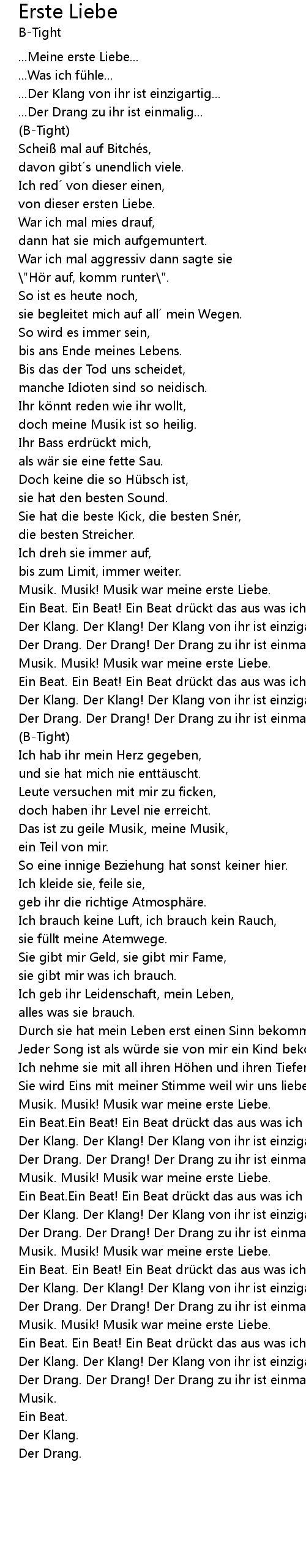 | Ein Beat.Ein Beat! Ein Beat drückt das aus was ich fühle. | |