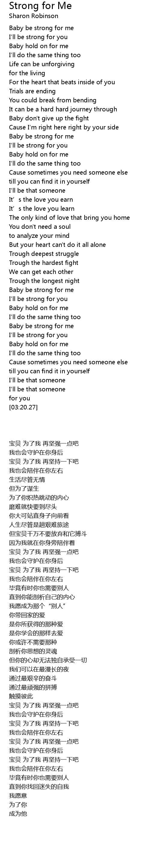 | [02:26.04] | Baby be strong for me |