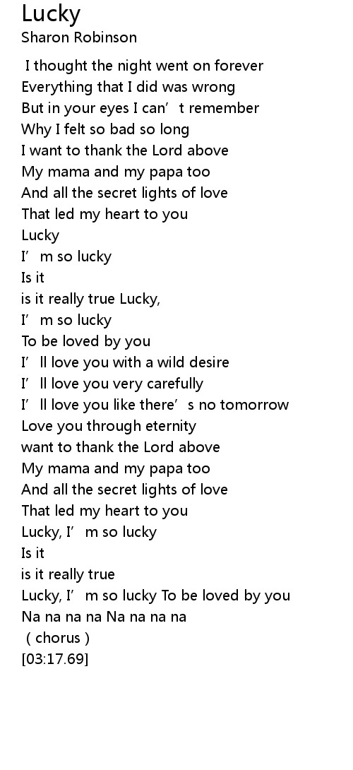 | [01:22.99] | is it really true Lucky, |