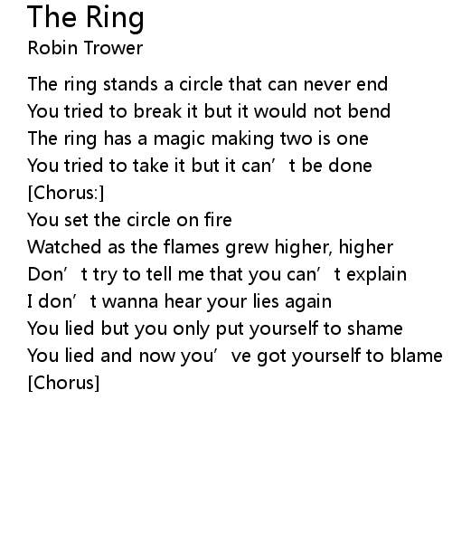 | The ring stands a circle that can never end | |