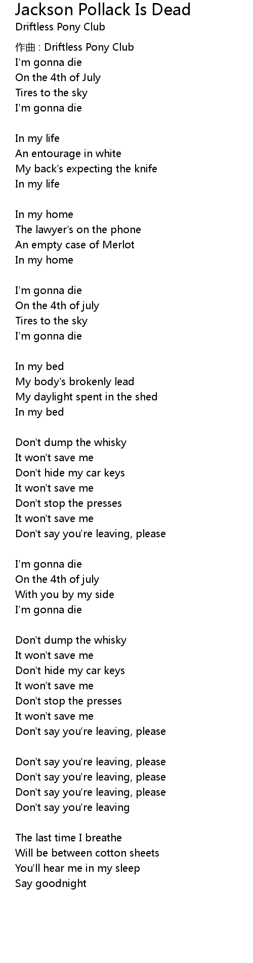 | 歌曲 | Jackson Pollack Is Dead |
