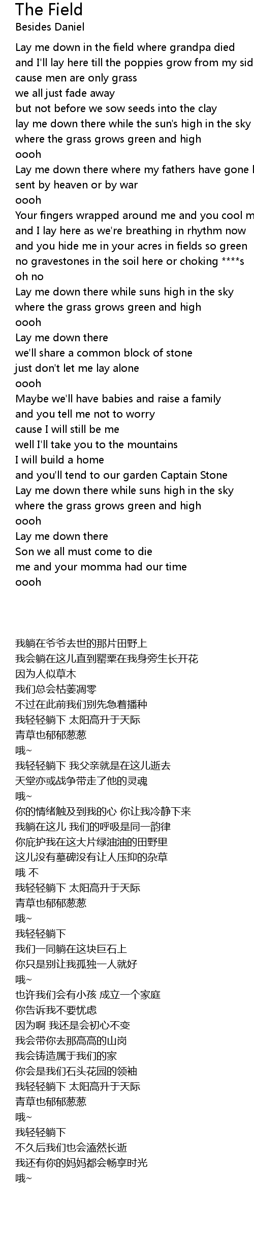 Lay me down in the field where grandpa died |