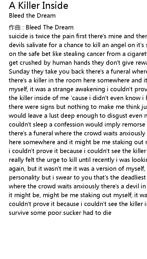| 歌曲 | A Killer Inside |