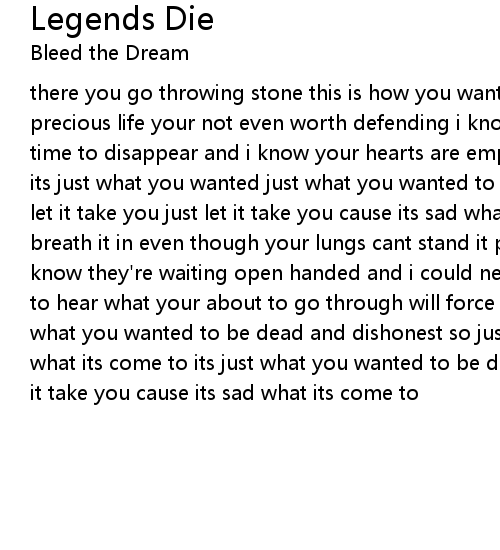 there you go throwing stone this is how you want to end it take your life precious life your not even worth defending i know your out there laughing its time to disappear and i know your hearts are empty and the end is calling near its just what you wanted just what you wanted to be dead and dishonest so just let it take you just let it take you cause its sad what its come to take it in breath it in even though your lungs cant stand it push it out breath it out you know they're waiting open handed and i could never tell you the things you want to hear what your about to go through will force you through your fear its just what you wanted to be dead and dishonest so just let it takeyou cause its sad what its come to its just what you wanted to be dead and dishonest so just let it take you cause its sad what its come to |