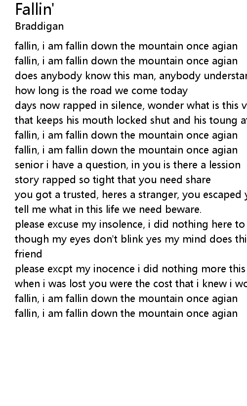 fallin, i am fallin down the mountain once agian |