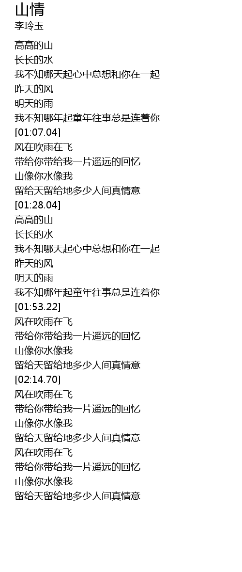 | [01:17.51] | shān xiàng nǐ shuǐ xiàng wǒ |
