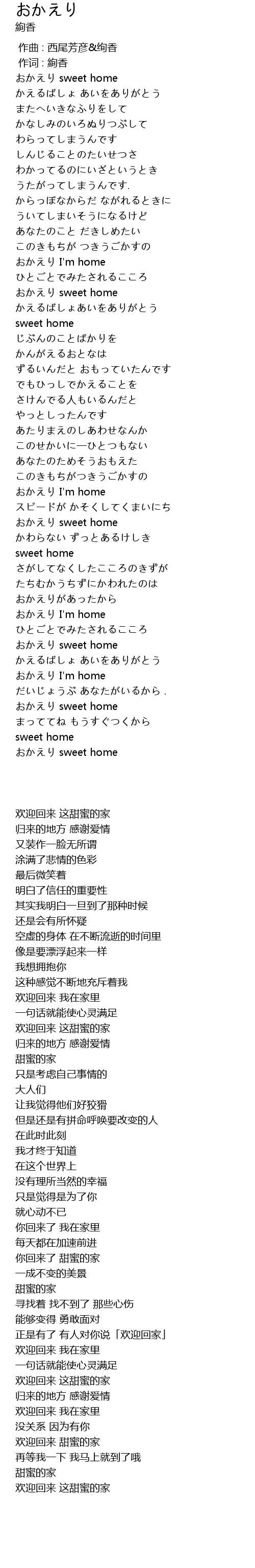 | [02:34.87] | 你回来了 甜蜜的家 |