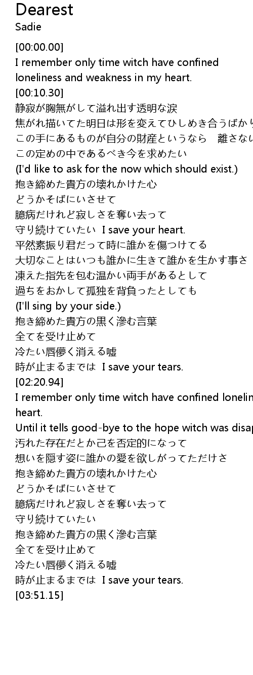 | [03:43.95] | 時が止まるまでは I save your tears. |
