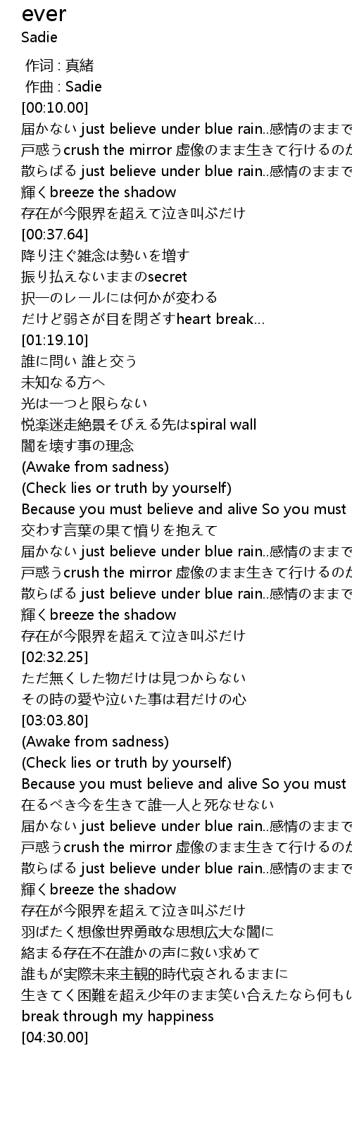 | [03:39.70] | 届かない just believe under blue rain..感情のままで |