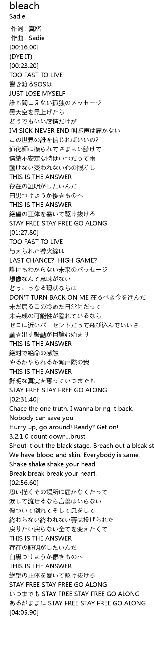 [02:47.15] Shout it out the black stage. Breach out a blcak stain.