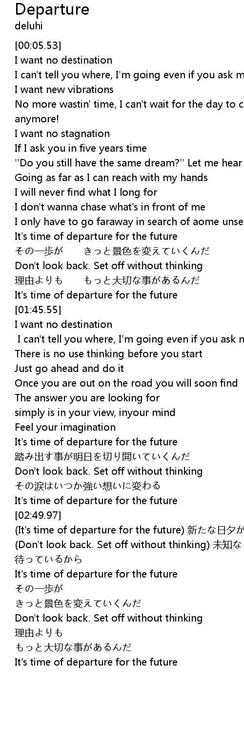 | [01:12.48] | I only have to go faraway in search of aome unseen destination |