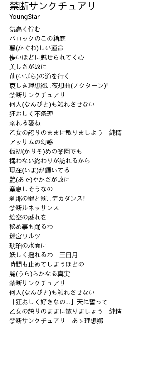 | [03:49.60] | 禁断サンクチュアリ あゝ理想郷 |
