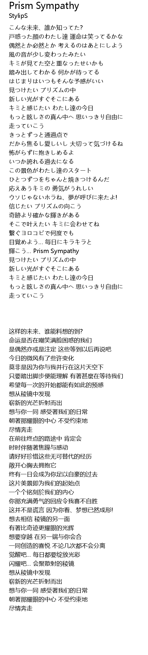 | [03:03.67] | 輝こう… Prism Sympathy |