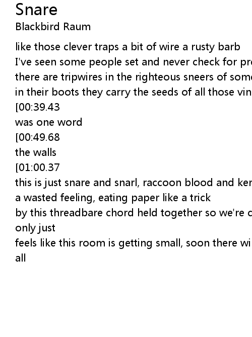 this is just snare and snarl, raccoon blood and kerosene |