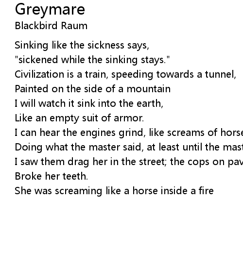| I can hear the engines grind, like screams of horses in a fire | |