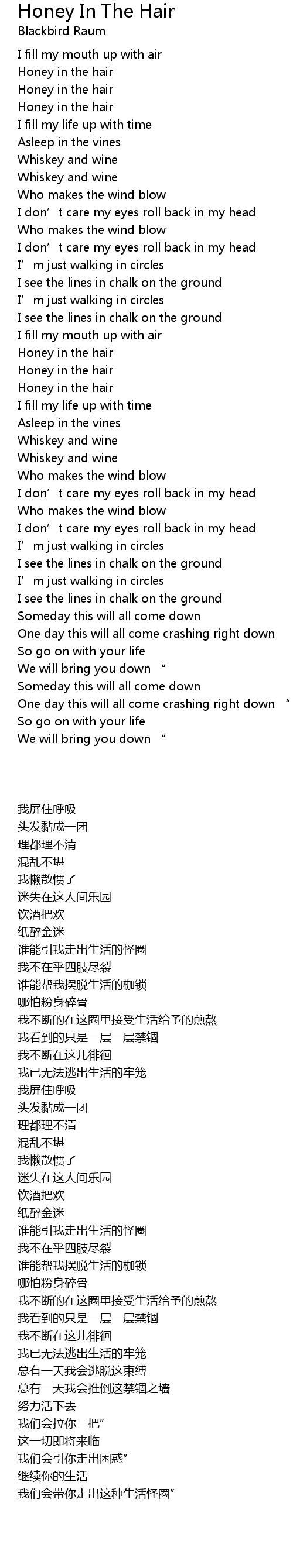 | [00:35.32] | Honey in the hair |