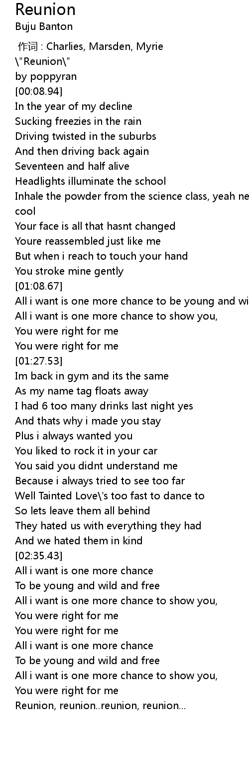 | [03:11.00] | Reunion, reunion.. reunion, reunion... |