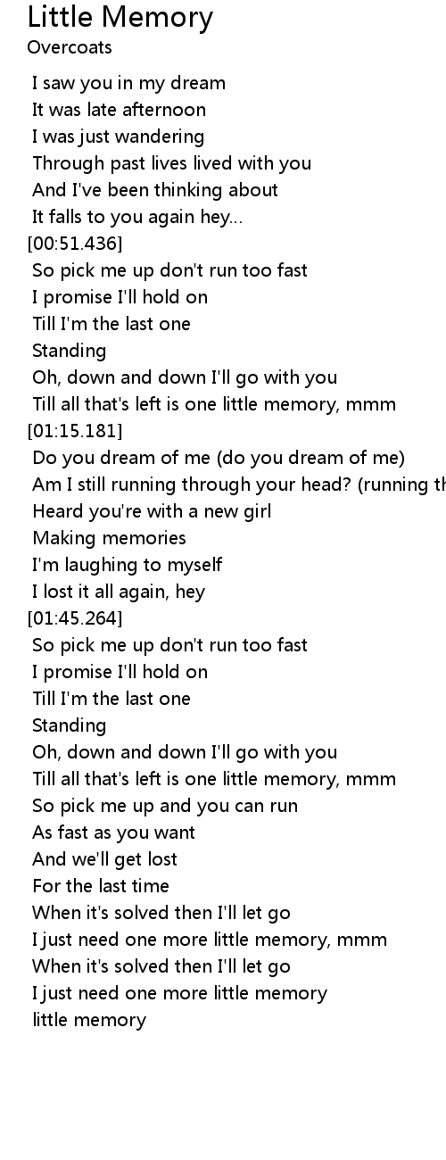 | [02:00.827] | Till all that's left is one little memory, mmm |