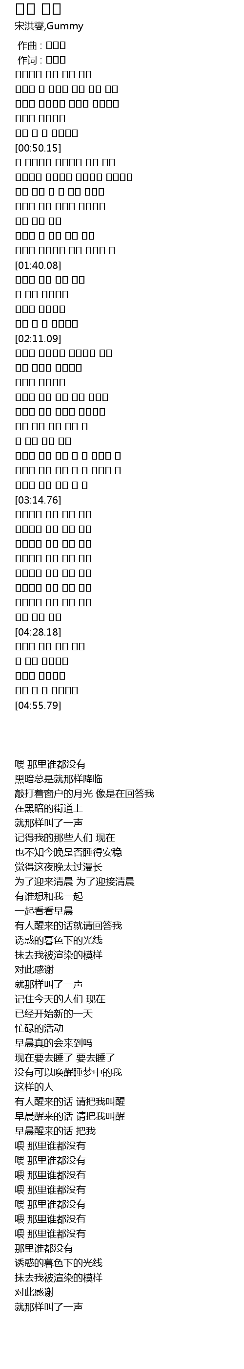 | [02:59.83] | 누군가 아침 되면 나 좀 일으켜 줘 |