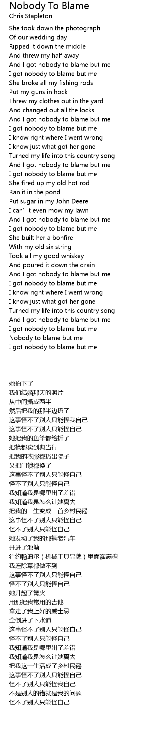 | 歌曲 | Nobody To Blame |