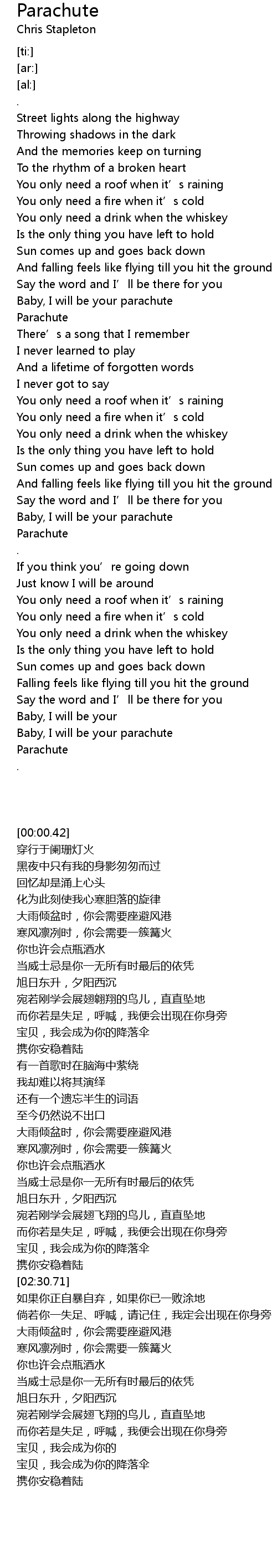 | [02:19.01] | Baby, I will be your parachute |