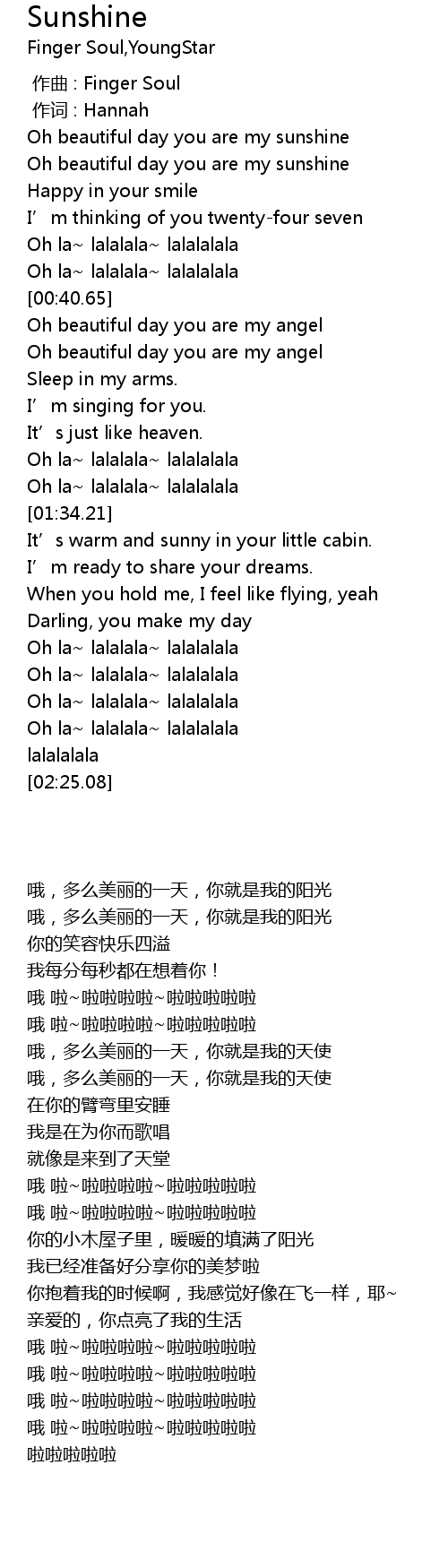 | [00:04.00] | Oh beautiful day you are my sunshine |
