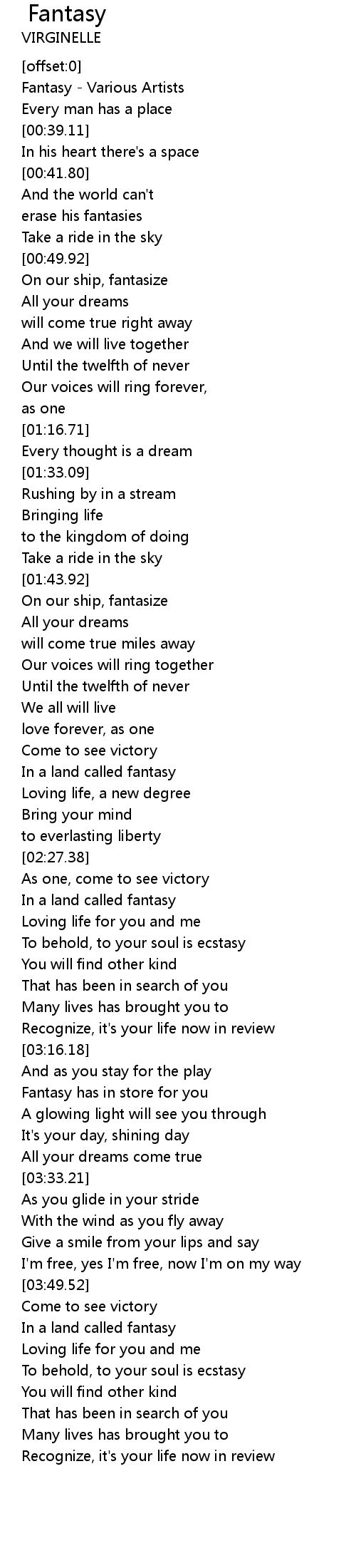 [00:00.72] Fantasy - Various Artists