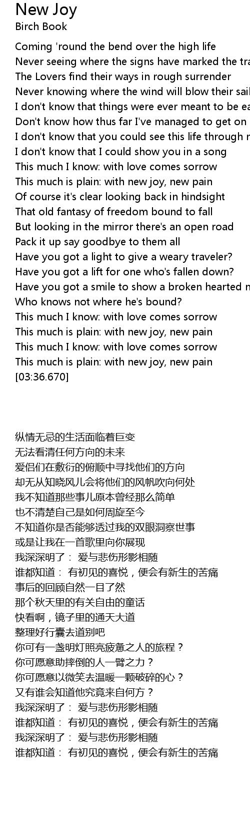 This much I know: with love comes sorrow |