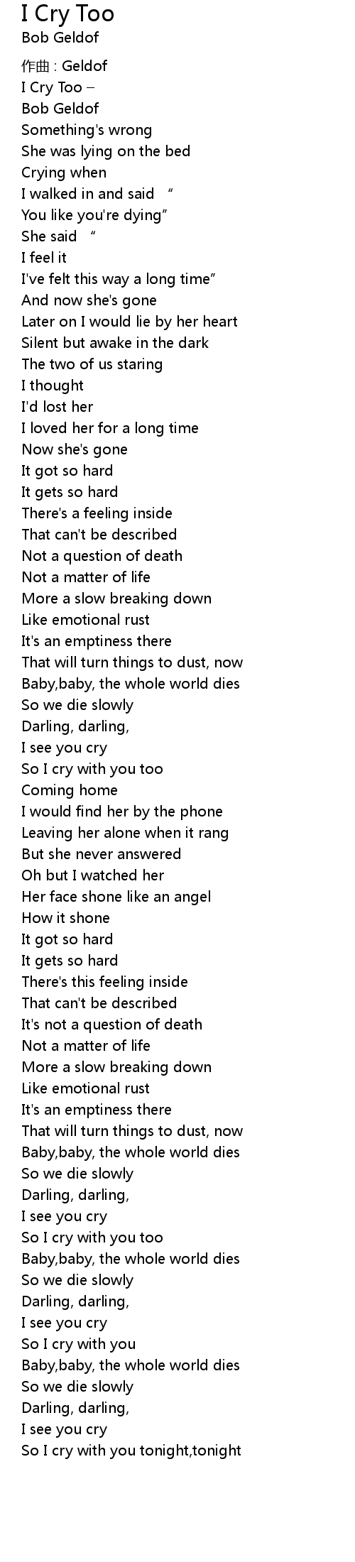 | 歌曲 | I Cry Too |