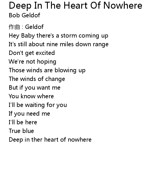 | 歌曲 | Deep In The Heart Of Nowhere |