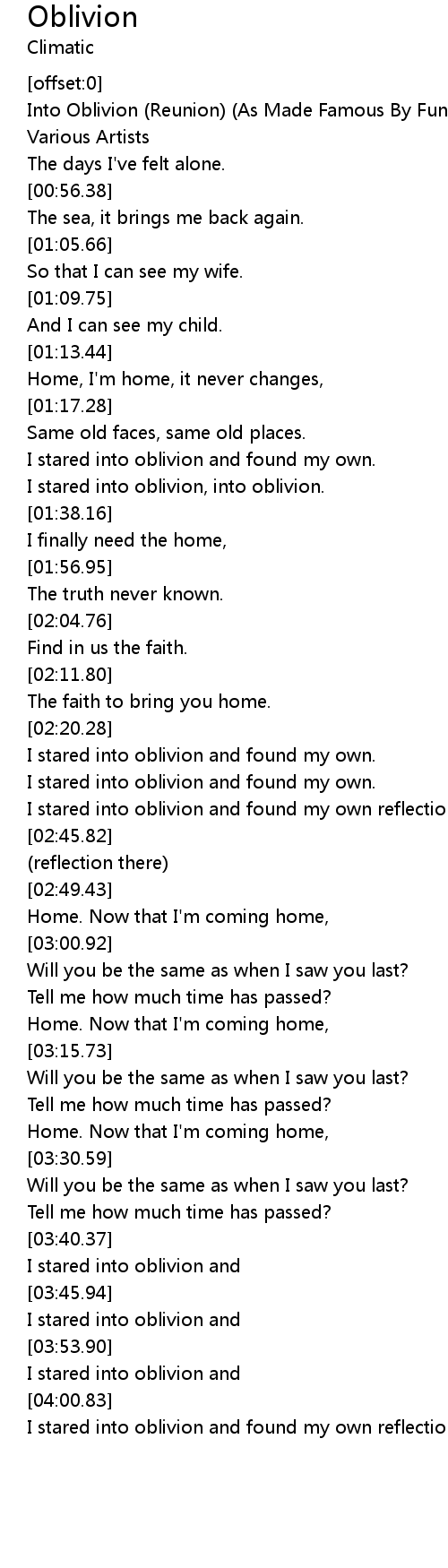 Into Oblivion (Reunion) (As Made Famous By Funeral For A Friend) - Various Artists |