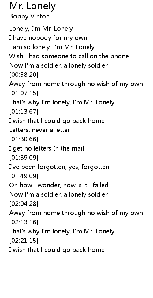 [01:09.99] That's why I'm lonely, I'm Mr. Lonely