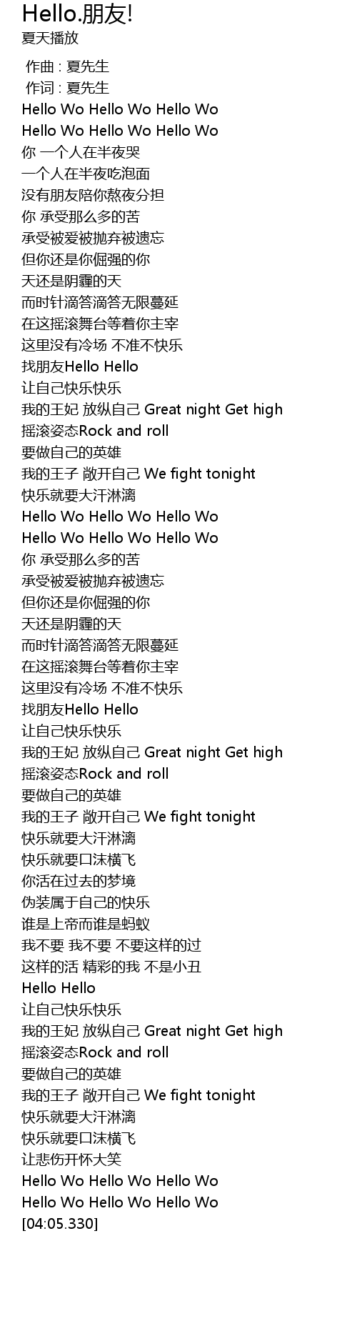 | [02:23.770] | zhǎo péng yǒu Hello Hello |
