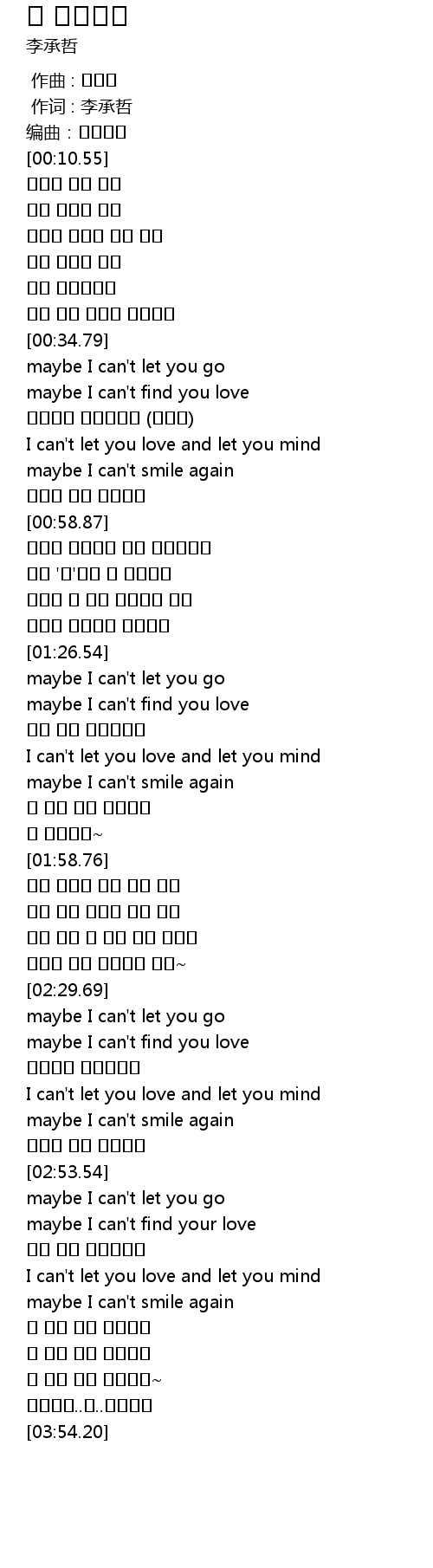 | [03:38.51] | 돌아와줘..음..돌아와줘 |