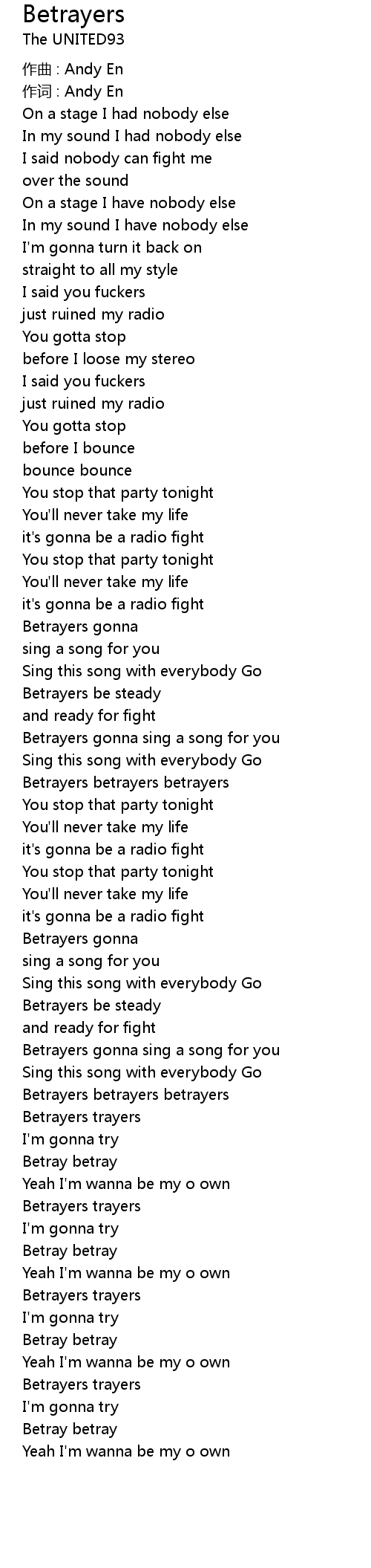 | Betrayers gonna sing a song for you | |