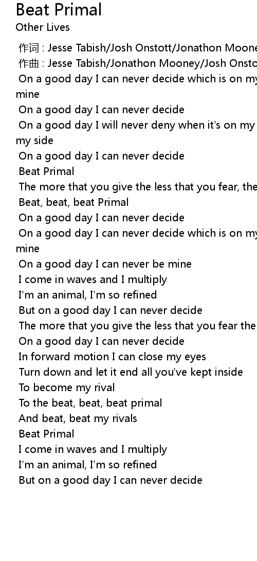 | [01:09.087] | Beat, beat, beat Primal |