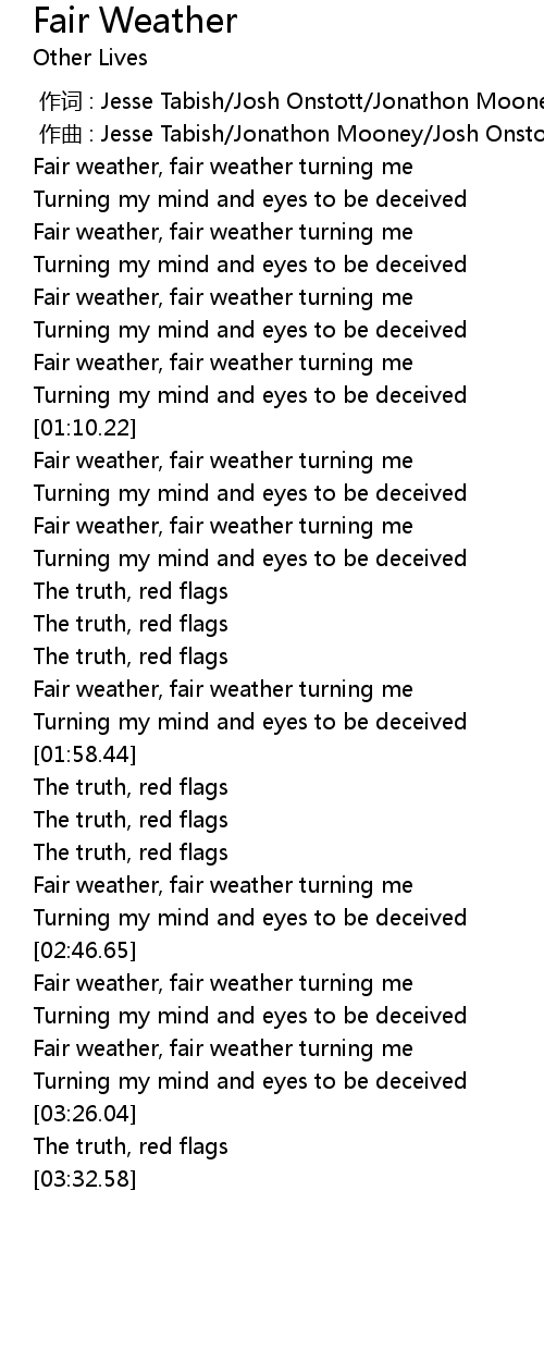 | [00:37.29] | Fair weather, fair weather turning me |