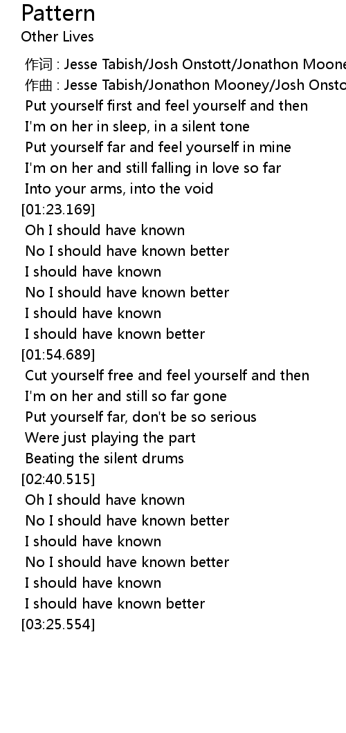 | [01:46.688] | I should have known better |