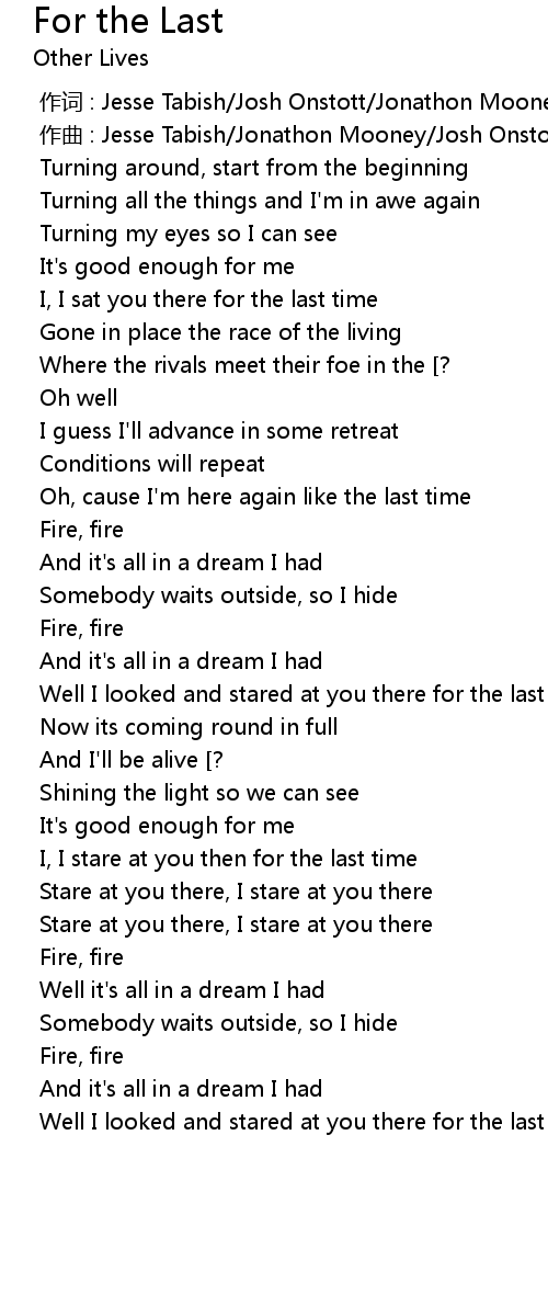| [00:00.000] | 作词 : Jesse Tabish/Josh Onstott/Jonathon Mooney |