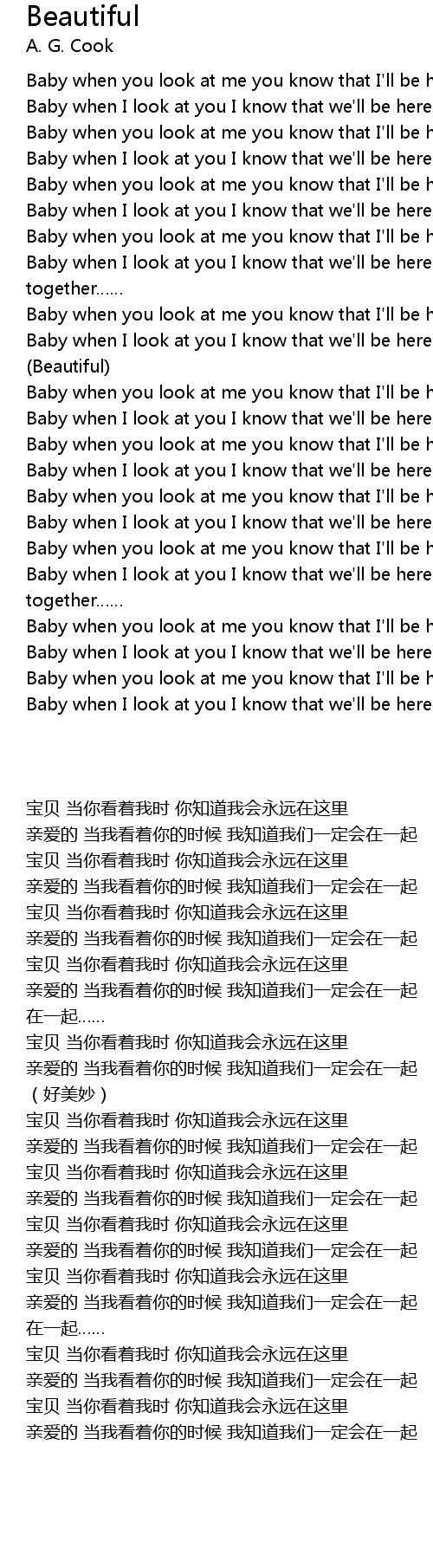 | [03:22.33] | Baby when I look at you I know that we' ll be here together |