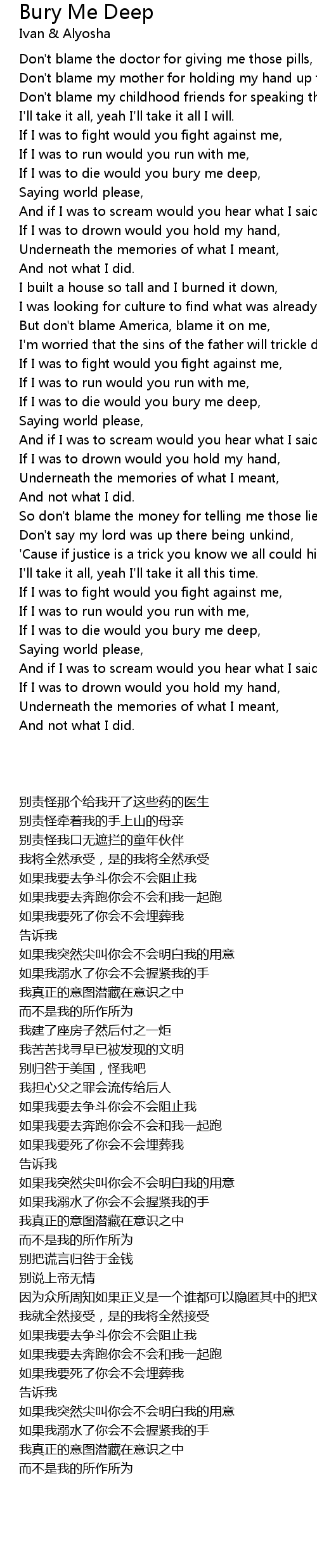 If I was to die would you bury me deep, |
