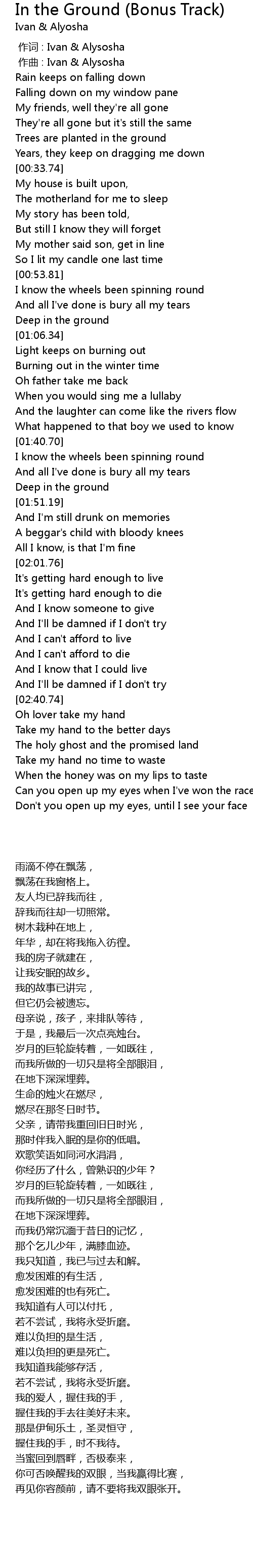 | [00:01.000] | zuò qǔ : Ivan Alysosha |
