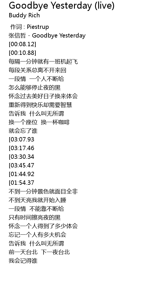 | [00:03.92] | zhāng xìn zhé Goodbye Yesterday |