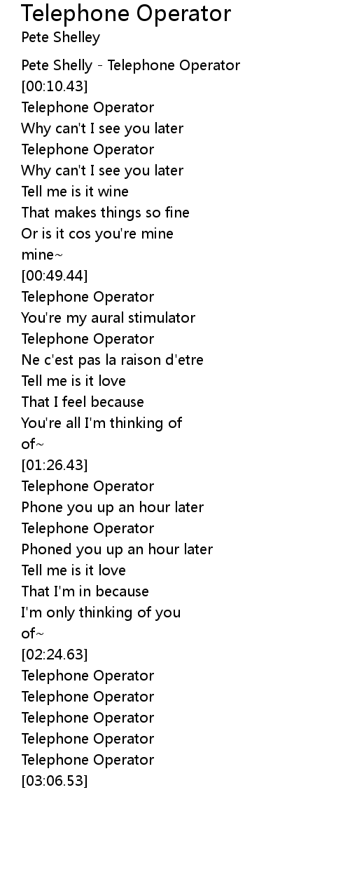 Pete Shelly - Telephone Operator |