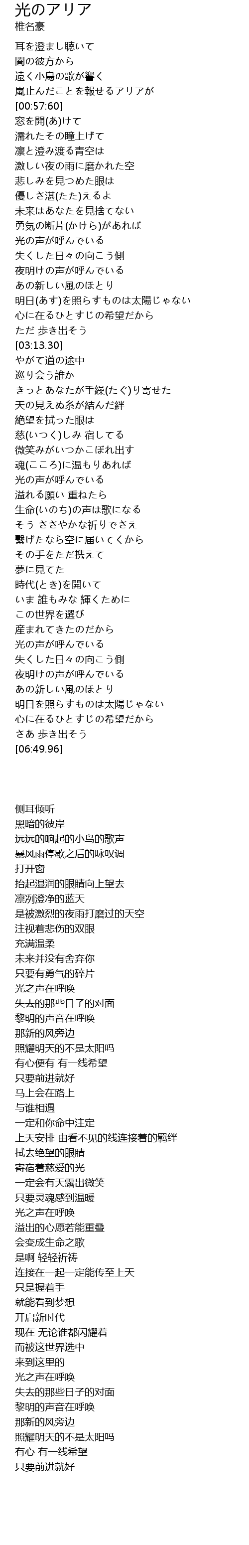 | [02:15.10] | 光之声在呼唤 |