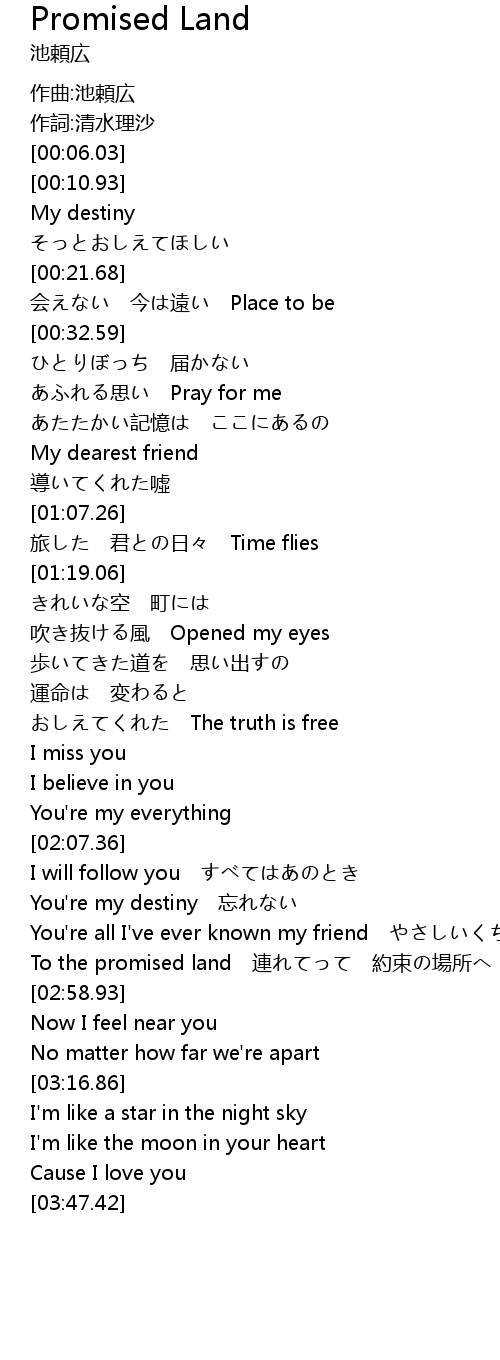 | [02:42.66] | To the promised land 連れてって 約束の場所へ |