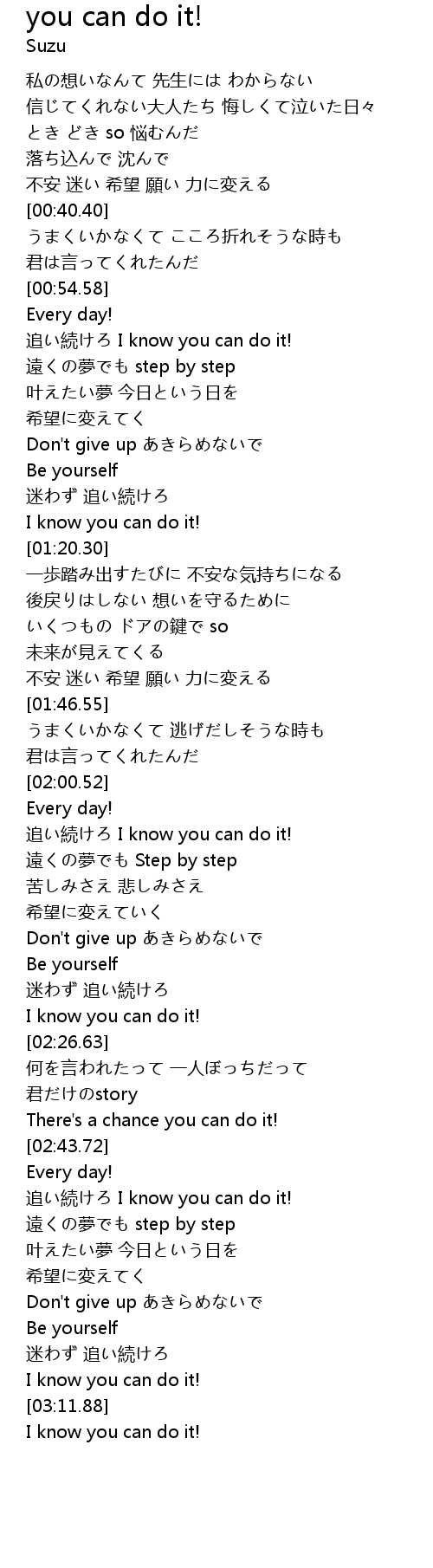 | [03:12.96] | I know you can do it! |