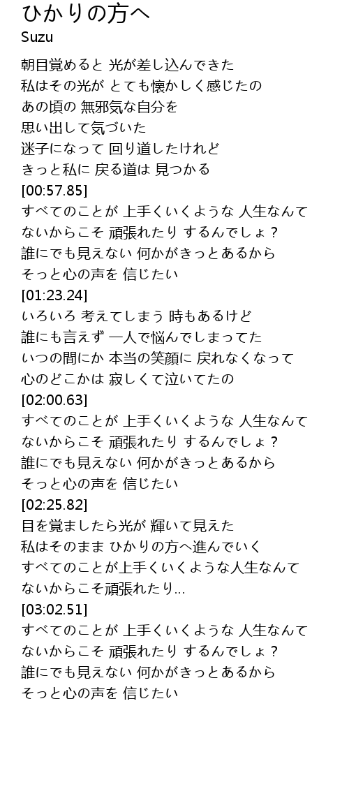 | [02:43.19] | 私はそのまま ひかりの方へ進んでいく |