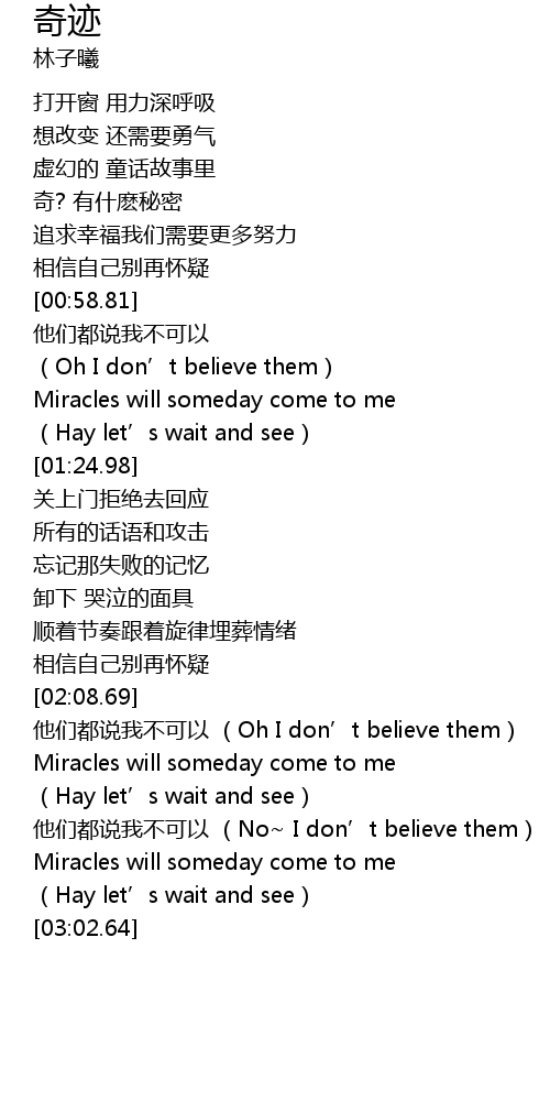 | [02:13.82] | 他们都说我不可以 (Oh I don’t believe them) |